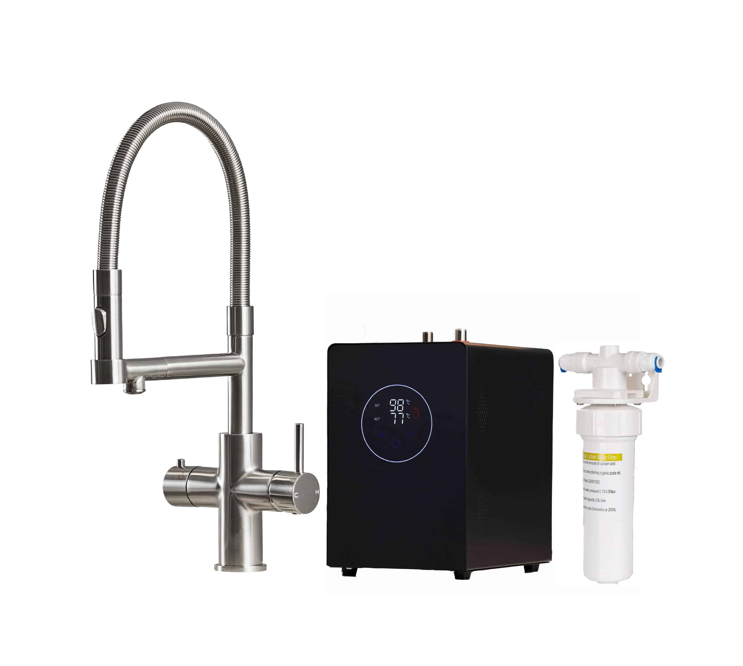 - Compact 2.4-litre under-sink tank with the performance of much larger units