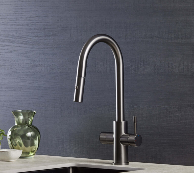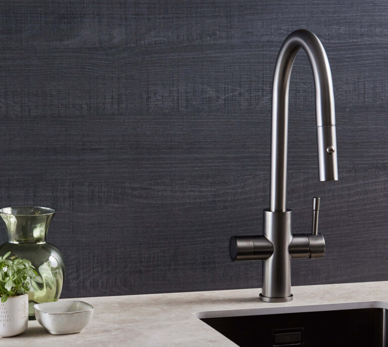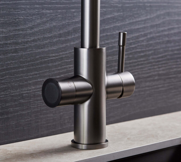 It replaces the kettle, filter jug and bottled sparkling water with a single tap at the sink, freeing up worktop and fridge space while giving you better water whenever you want it. The Crystalis in brushed nickel is the filtered water tap for kitchens built around warm neutrals and natural materials, with five functions from one spout.