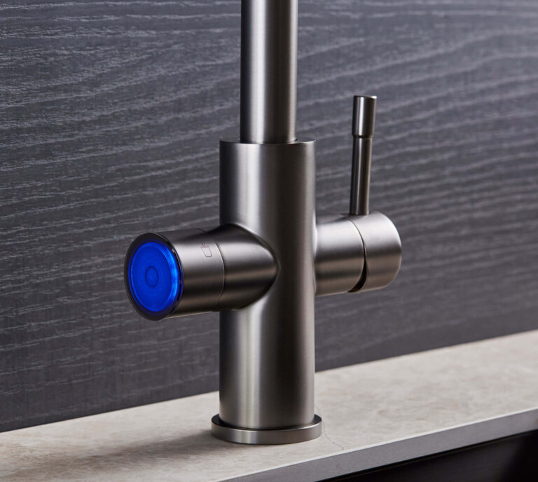 A compact 4-litre tank tucked under the sink handles all the heating, cooling and carbonating needs. It is small, discreet and reliable. Solid brass construction throughout means the tap itself holds its finish and function for years, making this one of the most considered sparkling taps in the range.