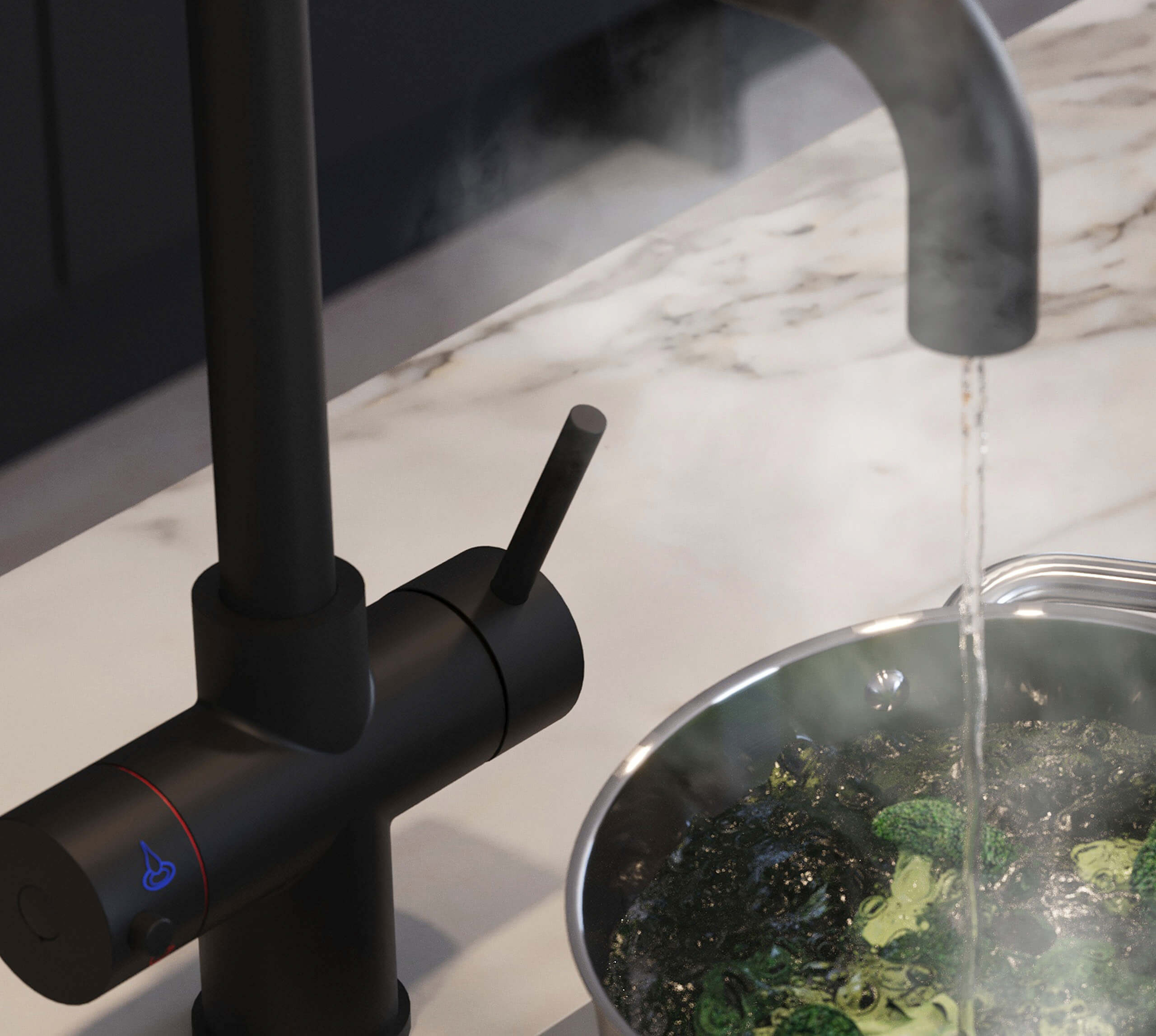 This matt black 3-in-1 tap adds a touch of dramatic elegance while delivering everyday practicality. Whether you're brewing tea, cooking pasta, or sterilising baby bottles, the Aureum boiling water tap brings instant convenience and effortless style to your kitchen — no kettle needed.